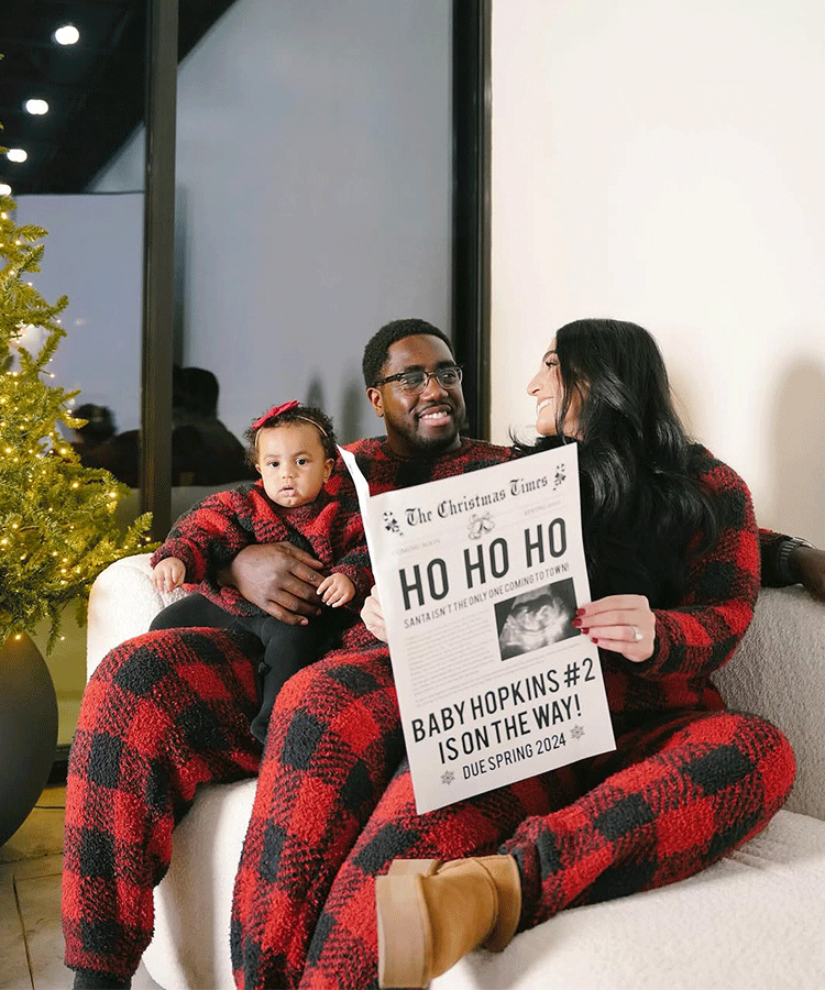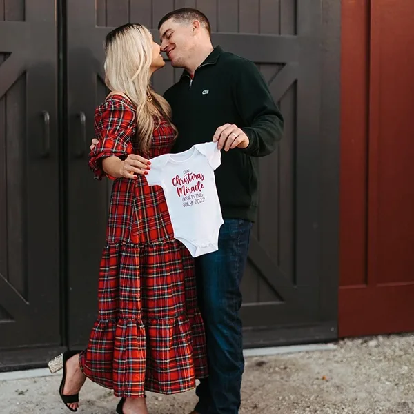 - Hanna Andersson: While they may be best known for their festive matching family pajamas, Hanna Andersson also has tons of newborn and baby apparel perfect for any Christmas pregnancy announcement.
