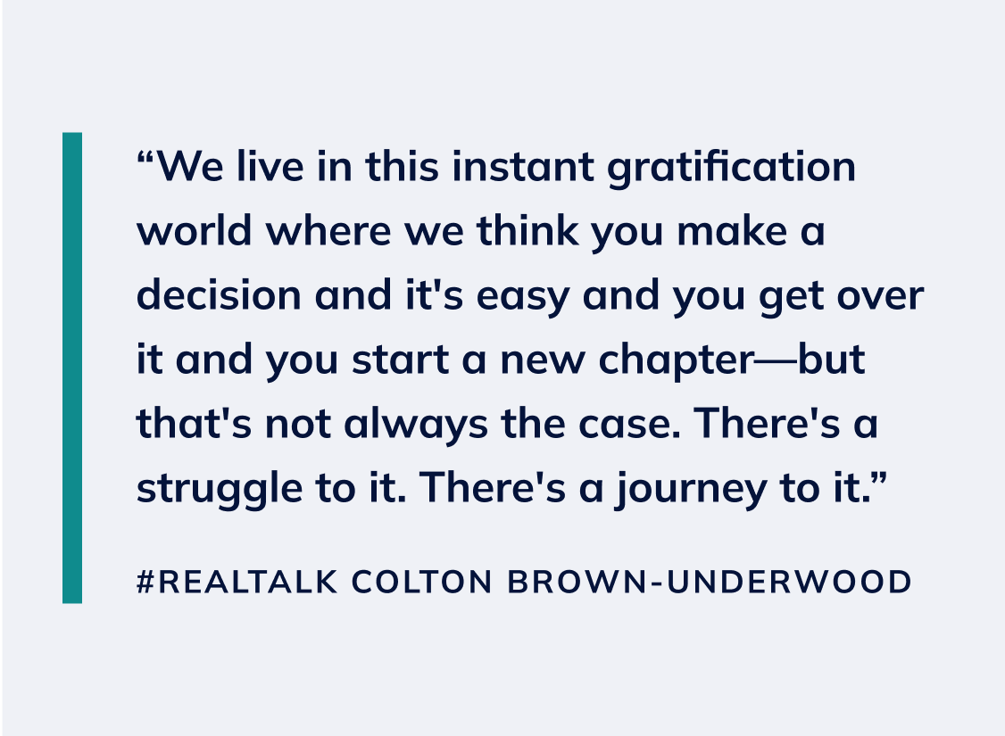 CBU: Just be patient with yourself. Often, in today’s society, we’re expected to have all the answers. We live in this instant gratification world where we think you make a decision and it’s easy and you get over it and you start a new chapter—but that’s not always the case. There’s a struggle to it. There’s a journey to it. I was very much on my [path] for a very long time. Did I handle everything properly or the right way? No, but it was my journey. At times we can lose sight of the fact that it’s supposed to be a process. You’re supposed to struggle and have adversity and get over it and get through it and learn from it and move on. That’s very much what I’ve been doing. I’d say be patient, but then also find people who you trust. Build that support system, whether it’s parents or best friends or a pastor or a teacher. Find somebody who you feel safe with and slowly start opening up to them and letting them into your struggles. I think you’ll quickly realize that you’re not alone and that your struggles are an opportunity to help other people.