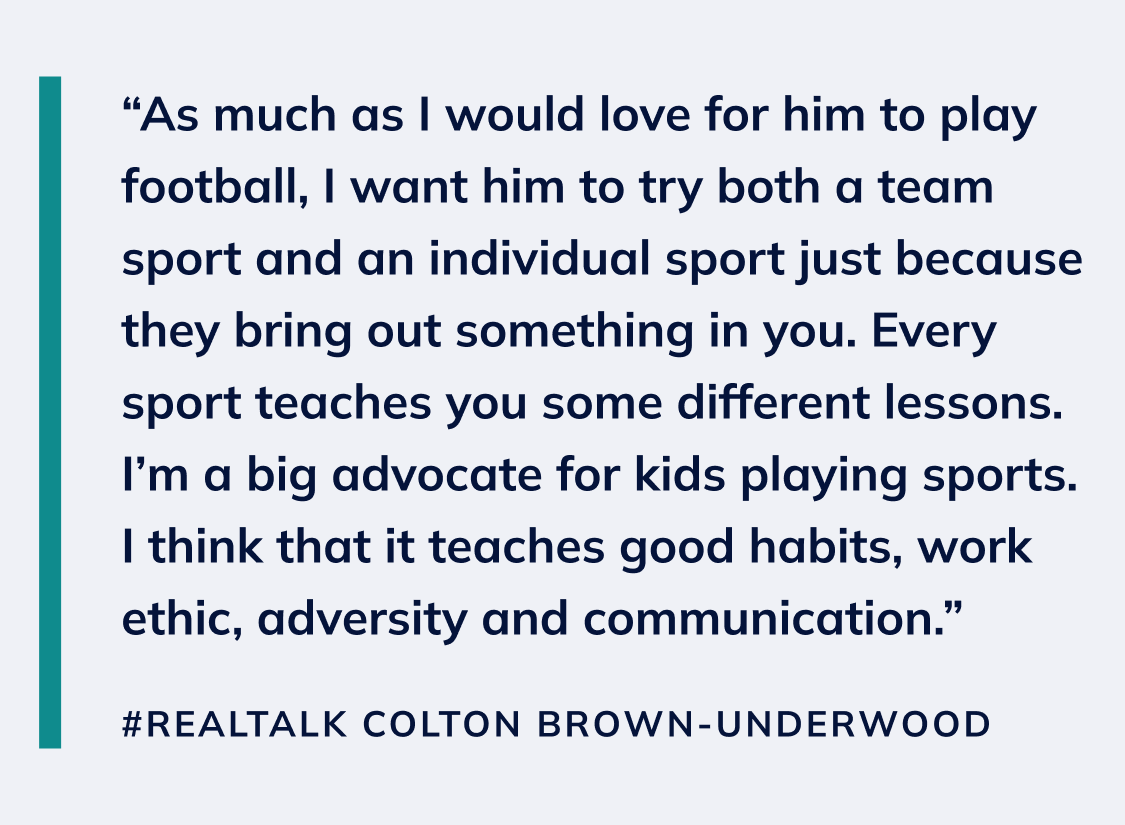 TB: Moving back a bit, you mentioned a potential desire to have Bishop play collegiate sports. Is there a sport that you’d love for him to play? Do you want him to follow in your footsteps?