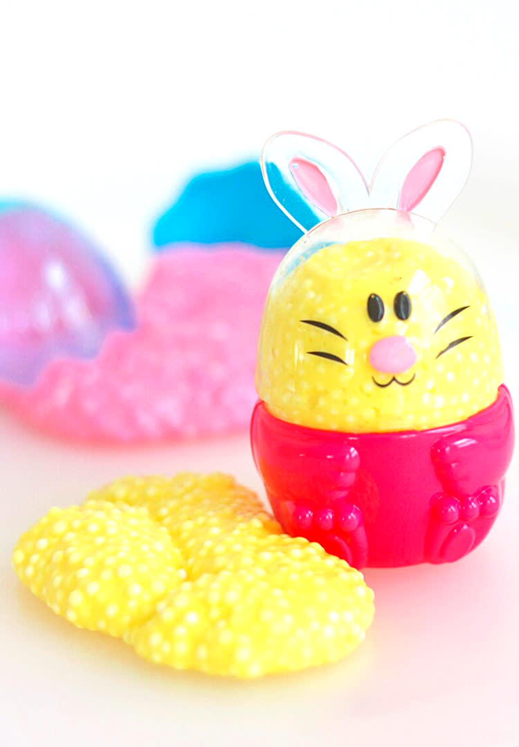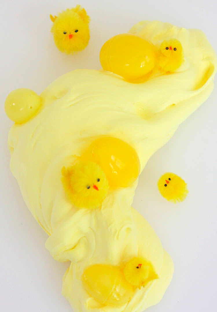 Little Bins for Little Hands brings us this soft, fluffy Easter slime thanks to a special ingredient: shaving cream. Add some fun spring accessories to it like toy bunnies, chicks and plastic eggs to create an Easter-themed sensory bin for even more hands-on entertainment.