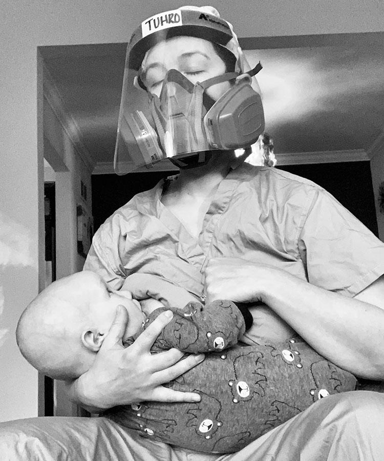 I started breaking rules I had always vowed I wouldn’t and as time went on, things became easier. Breastfeeding finally became less painful. We started co-sleeping and side-lying feeding. I rocked and fed my baby to sleep. I fed on demand and stopped worrying about a schedule. Meanwhile, I was becoming a “hero” and “essential frontline worker” against my will in the other main arena of my life, my career.