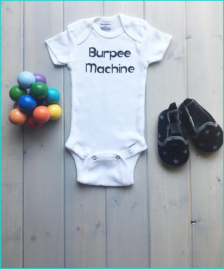 Buy it: Sodakduds Burpee Machine Onesie, $10, Etsy.com