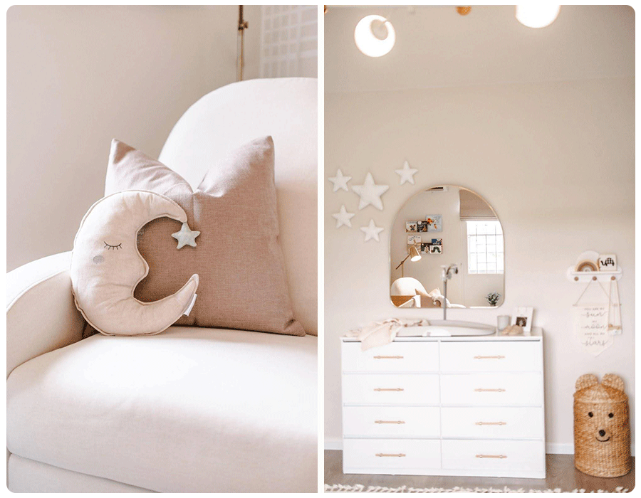 For parents who love the idea of a dreamy, sky-inspired space but don’t want to commit to bold galaxy motifs, this nursery from designer Rachael Quamina proves that celestial can be subtle. Soft cream tones provide the foundation, while star accents, natural textures and warm wood details add gentle personality. “In designing this nursery, our goal was to create a sanctuary that offers both comfort for the parents as well as a serene, safe space for baby,” Quamina shares. “Every detail, from the soothing color scheme to the thoughtful design elements, was selected to create a harmonious and inviting environment for both baby and the parents.”