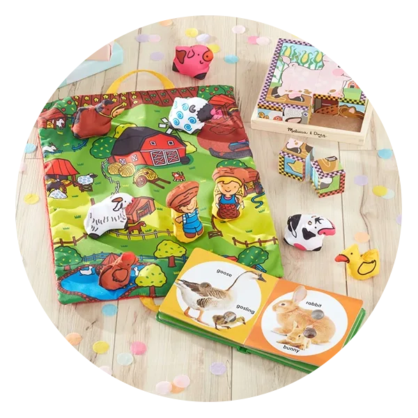 Just because you’re shopping for twins doesn’t mean you have to buy two gifts. Case in point: This colorful play mat by Melissa & Doug. Kiddos will love the vibrant farmyard scene that comes with nine animal figures that rattle, crinkle or squeak. This sensory gift for twins is a real winner, as it promotes fine motor skills and color awareness. Bonus: The play mat folds up into a convenient storage bag once playtime’s over.