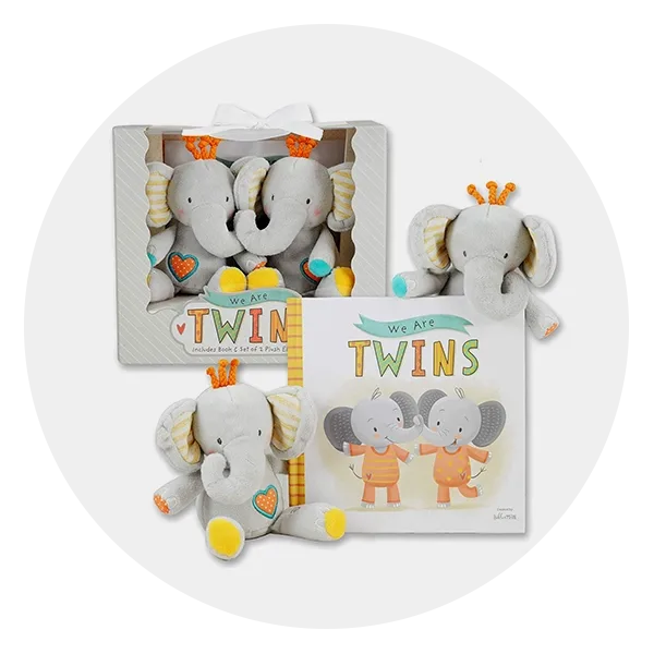 Last up is a lovely gift set for twins. The set includes a rhyming book called We are Twins— which focuses on the special bond between twin siblings—as well as two plush elephant rattles. Bonus: The gender-neutral color scheme makes it a fabulous gift for twin girls, twin boys or a twin girl and boy.