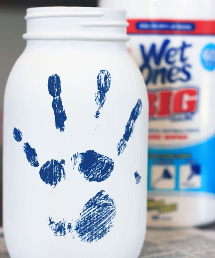 Perfect for any grandparent who enjoys fresh blooms, this vase from Midwestern Moms incorporates baby’s handprint into the house decor. Grab a clean mason jar, some paint and, of course, baby’s teeny tiny hands.