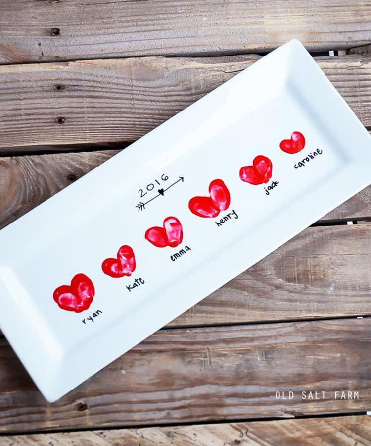 Another wonderful Grandparents Day craft option that showcases the entire family or multiple grandchildren is this serving platter from Old Salt Farm. It requires a white serving platter and glass paint. Once you’re finished, you’ll want to pull it out for any and every gathering—including the next Grandparents Day.