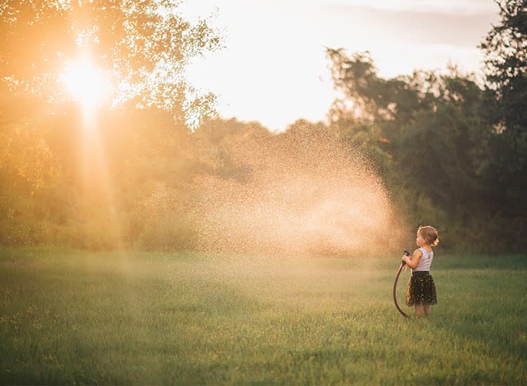 If you happen to be playing outside with your kids in the evening (or even the crack of dawn—yawn), go grab your camera and make use of that glorious natural light. “When shooting outdoors, I tend to shoot closer to the ‘Golden Hour,’ which is generally the hour leading up to sunset or the hour right after sunrise,” Houser says. “The light tends to be the most flattering the lower the sun is in the sky. You don’t get as many harsh shadows on your kids during that time, and you can capture that soft, glowing light that I love.”