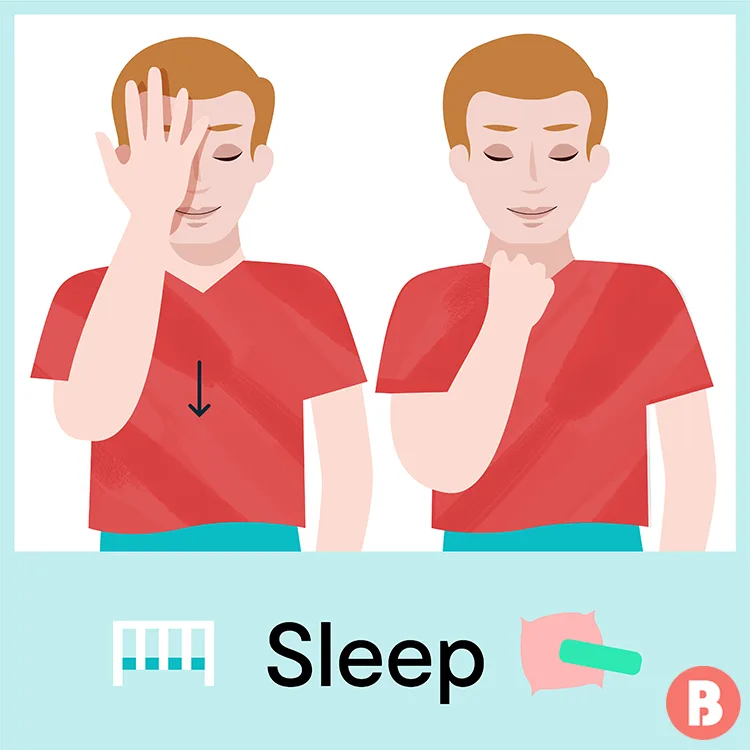 Nobody likes having a fussy, sleep-deprived baby on their hands, so it’s a good idea to practice “sleep” in sign language. Hold your hand over your forehead with your fingers spread apart, then draw your hand down over your face until your fingers and thumb come together to touch your chin. Even babies who resist nap time may whip this one out when they’re especially exhausted.