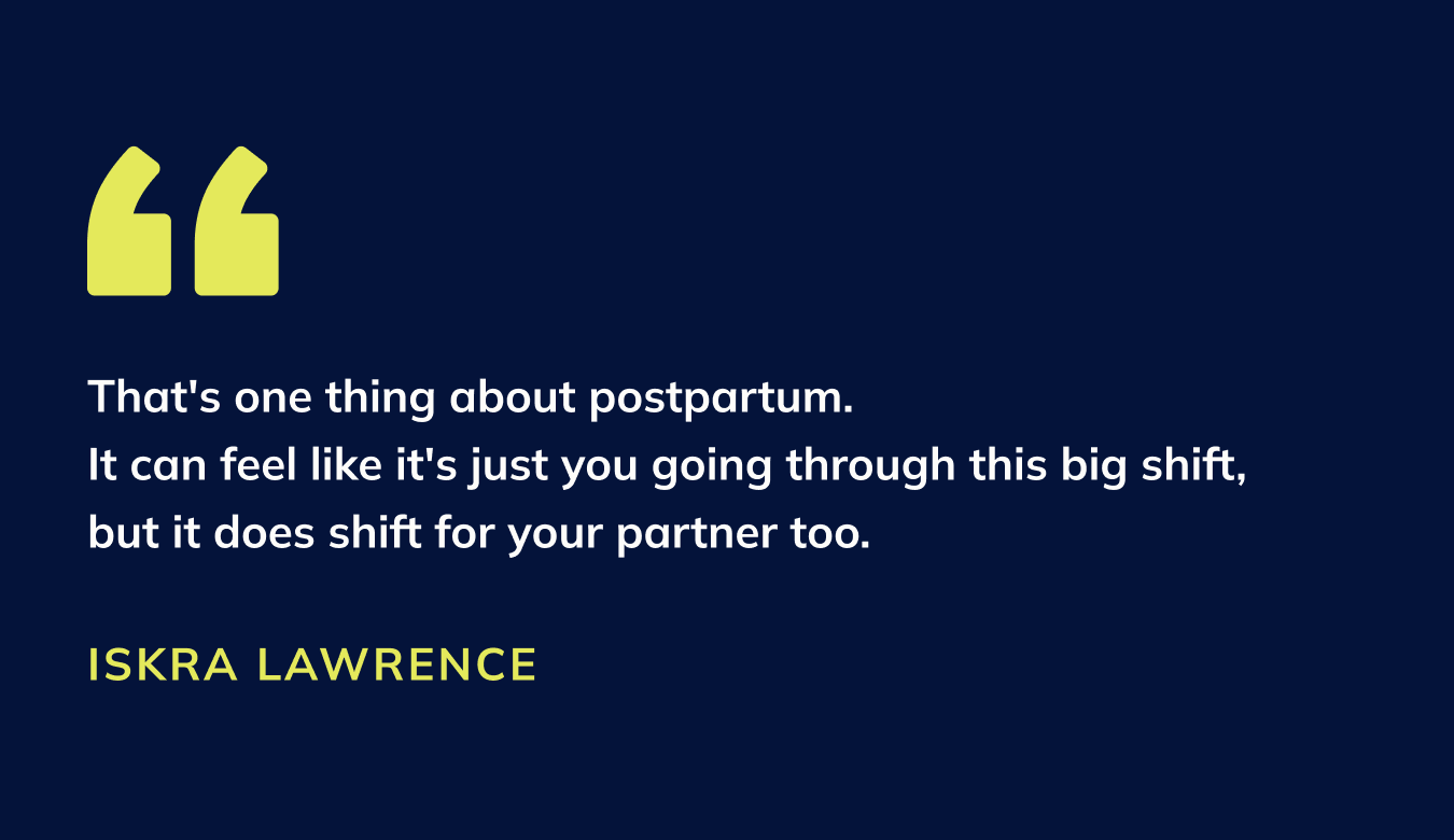 IL: I’ll preface conversations like, “I’m going to try and communicate something. I don’t know if I have the energy to word it right or put it in a tone that’s going to be received in a positive way. I just want to let you know that I’m struggling and I don’t want to upset you, but I need to get this off my chest.” … You need to offload. I think that’s one thing about postpartum. It can feel like it’s just you going through this big shift, but it does shift for your partner too. Yes, it does shift for other people—but you’re the one where hormonally, everything’s changing. On a cellular level, your body is different. And your baby does need you in a different way and on a different level. So giving yourself grace to still feel valid for having those moments where you need to offload, that’s very important. I remember even just the other day having a conversation with Philip and saying, “This probably feels like I’m directing this at you because I’m frustrated, but I need to talk to someone about it and you are right here. I’m not targeting you. I just need to say it.”