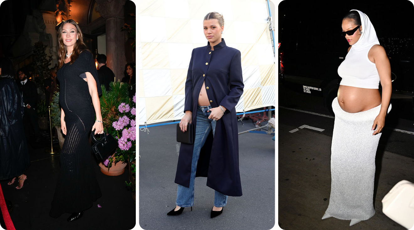 Rihanna’s revival of maternity fashion has rippled out to other stars like Sienna Miller, Sofia Richie Grainge and Hailey Bieber, who all pushed the envelope further in 2025. “Sienna Miller’s relaxed, boho-inspired silhouettes and soft tailoring brought back an elevated ease that feels effortless while still flattering a growing belly,” says Stitch Fix M.O.M (Milestones of Motherhood) stylist Amy Depler. “She styles herself like her bump is an accessory as she continues to step out in unique pieces.”
