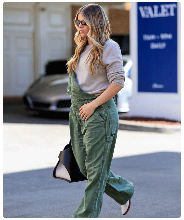 Celebrities like Vanessa Hudgens and Sofia Richie Grainge have mastered the ultra-comfy, off-duty look with one standout staple: the jumpsuit. “An oversized jumpsuit, paired with a cute top underneath, can do no wrong,” Trunfio. “I think having that go-to, foolproof wardrobe staple for maternity dressing, that can take you all the way through each trimester and be your ticket to an effortless, hassle-free, comfortable experience while still looking chic, is a must.”