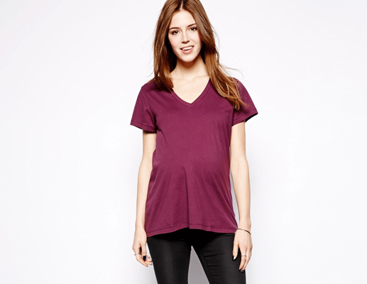 For those days you don’t want to think about what you’re wearing, we love a rich, vibrant v-neck top (like this one!), a pair of maternity skinny jeans and a pair of comfortable shoes. You’ll be comfy and chic. $19, ASOS.com