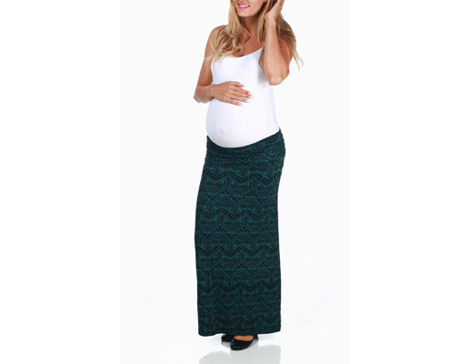 You might think that solids are a safer choice (since they draw the eye up and away from your bump), but we say if you got it, flaunt it! We love this skirt with a plain white cami (or t-shirt) and an unbuttoned chambray shirt. $48, PinkBlushMaternity.com