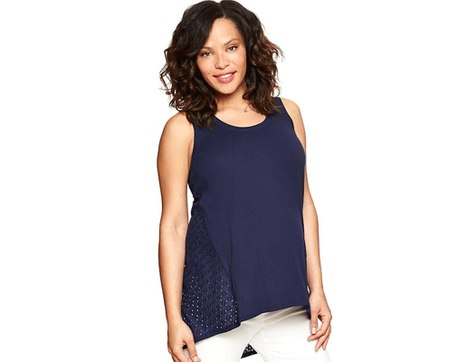 The eyelet detailing on the side of this flowy top is so flattering for spring. It’s longer in the back (to provide more coverage) and looks great when you wear it under a light-washed jean jacket. $30, GAP.com