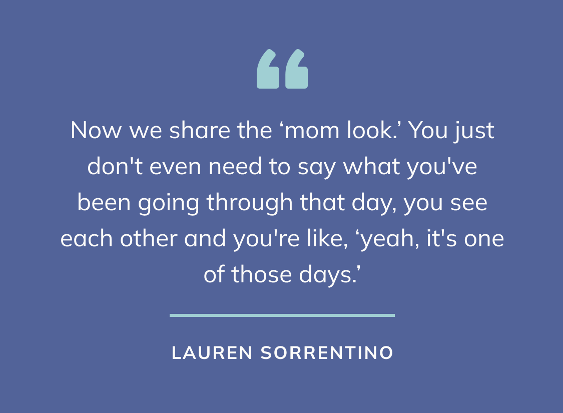 LS: And now we share the “mom look.” You just don’t even need to say what you’ve been going through that day, you see each other and you’re like, “yeah, it’s one of those days.”
