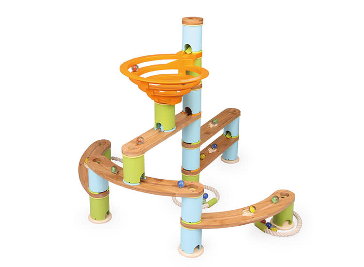 Early engineering takes the lead when constructing a marble run. Fat Brain Toys Bamboo Marble Run is STEAM aligned as a child constructs the marble run from the ground up. Children will practice critical thinking as they work to create different paths and form hypotheses about which marble will speed to the bottom first.