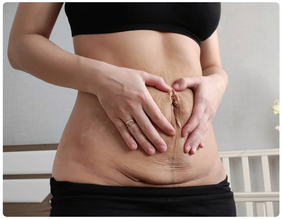 If the appearance of your belly is having a negative effect on your quality of life, you might consider surgery at some point. You have two options, says Petruzzi: a panniculectomy, which removes the excess skin and fat, and a tummy tuck (or abdominoplasty), which both removes excess skin and fat and tightens the abdominal wall muscles for added shaping and contouring. Your healthcare provider can help you figure out which surgery is best for your anatomy and future pregnancy plans, says Petruzzi.
