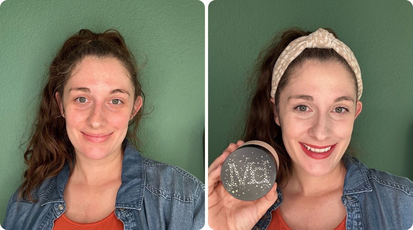 As the name suggests, this pregnancy-safe foundation is a powder product. Tandra used a fluffy makeup brush to apply it to her skin and said it the “application was easy and it blended quickly to my skin.” According to Bare Minerals, the powder should be buffed into your skin with a brush using circular motions. This activates the mineral-based pigments and transforms them from a powder to a silky cream. One layer provides a sheer layer of coverage, but it’s buildable, so you can keep going until you have the desired finish. “I like that it can be a light foundation or a little more buildable if needed,” confirms Tandra.