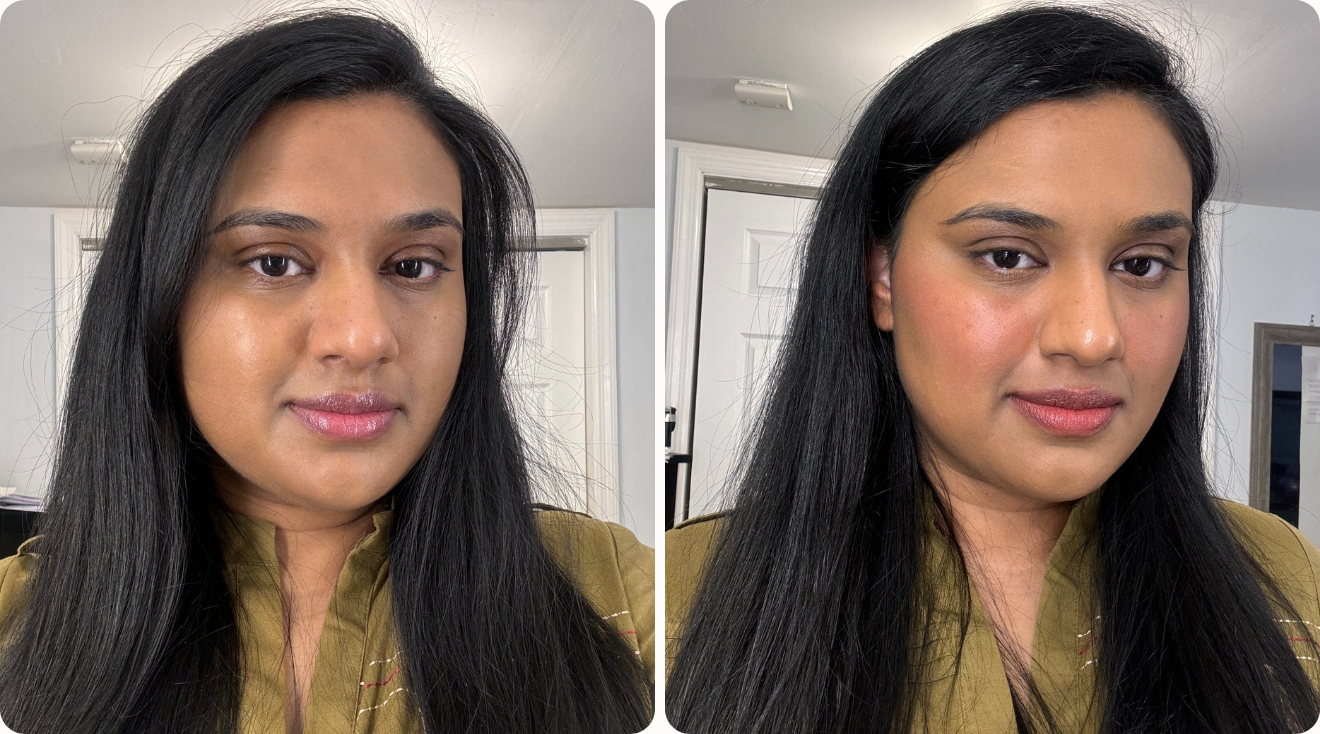 This blusher is available in eight different shades. Mahnur tested out “Warm Flush,” which is a tawny brown color with warm undertones. The formula offers a sheer wash of color, but it’s buildable for folks that prefer a bolder blush application. Describing it as “stunning,” Mahnur said it blended seamlessly with her skin and provided a natural, healthy flush. There’s also no shimmer or glitter in the formula, which many women prefer. “The shade feels perfect for everyday wear, but I do wish there were more options available to cater to a wider range of skin tones,” added Mahnur.