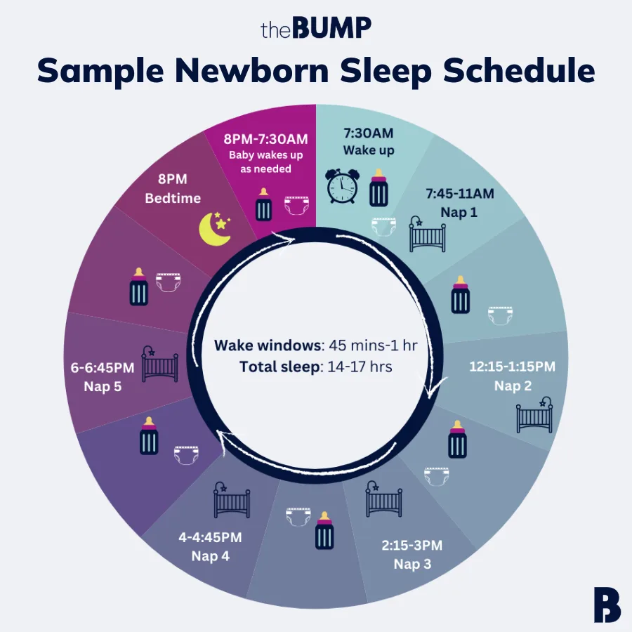 With that said, here’s a sample newborn sleep schedule (keeping in mind there’s a lot of variation):