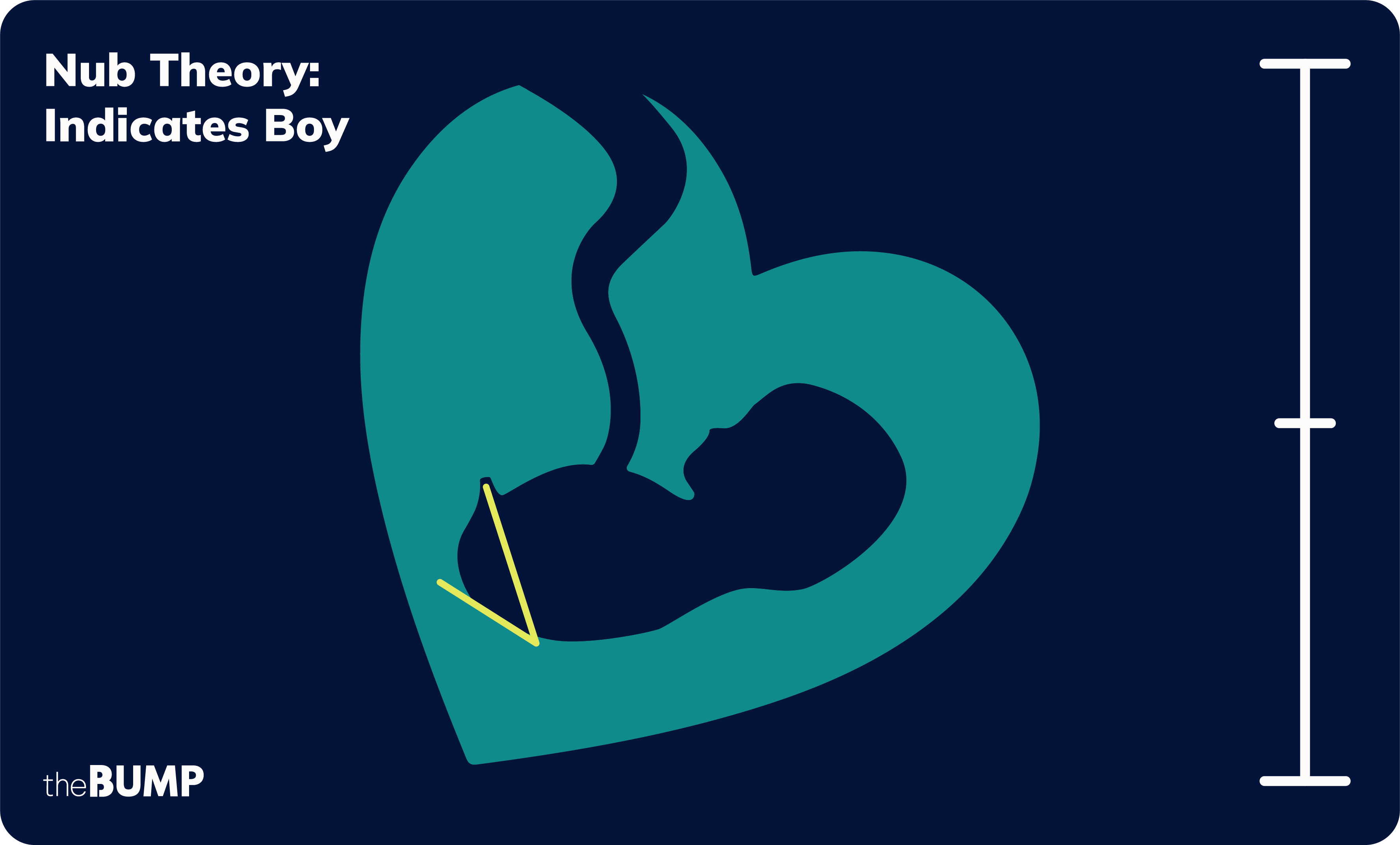 Nub theory compares the angle of baby’s genital tubercle to their spine. Looking at this positioning is commonly referred to as “the angle of the dangle.” “To put the nub theory into practice, an ultrasound technician would need to capture a sonogram of baby in a clear profile, so the full length of their spine is visible,” Pope says. “Next, the technician would locate the genital tubercle protruding from between baby’s legs and determine the angle between the nub and the fetal spine.” If the nub is angled upwards (more than 30 degrees relative to baby’s spine), it can indicate a male fetus, Chuang says.
