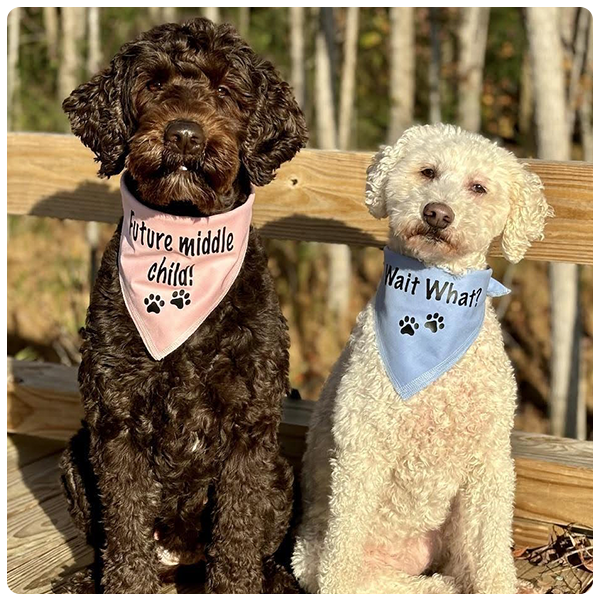 Marina C., a mom of one in North Carolina, dressed up her pups with these adorable bandanas to surprise her partner, Hailey. “Our dogs were our original ‘kids,’ so we wanted to do something lighthearted that depicted how their lives would change too,” she says.