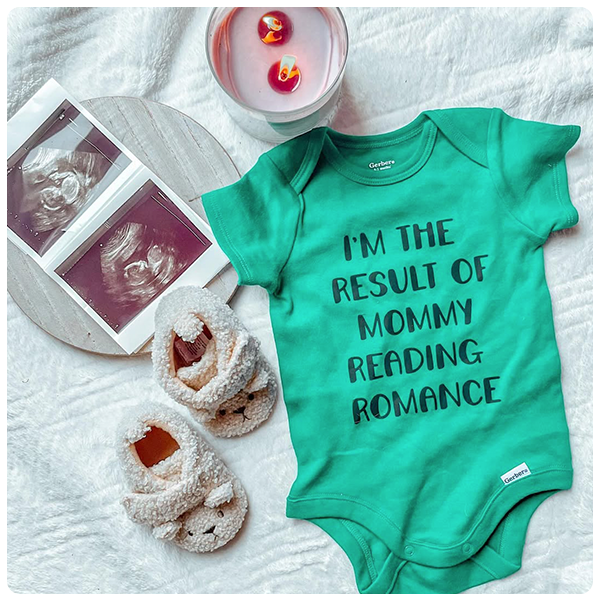 This playful pregnancy announcement puts a bookish twist on the classic flat-lay, featuring a cheeky onesie from @sinsistersstudio that nods to Mom’s love of romance novels. Styled with ultrasound photos and cozy baby booties, the setup is perfect for avid readers.