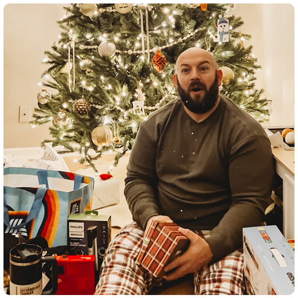 Katie S., a mom of four, surprised her husband with a Christmas pregnancy announcement by wrapping her positive pregnancy test in a gift box. After shaking the box and joking that it might be a toothbrush top, he quickly realized what it was and jumped up to embrace her. “Going through infertility treatments, you don’t really get the chance to do a fun way to tell your partner, so this was so fun for me,” Katie wrote in the caption.