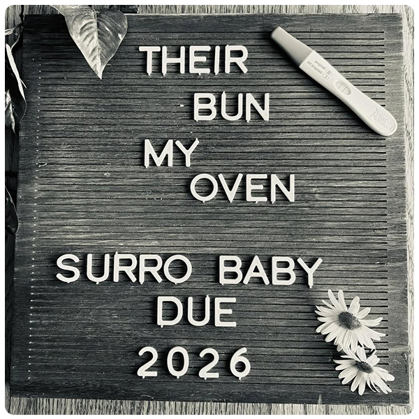 This understated announcement posted by @brownstonesurrogacy shares the news of a baby on the way through surrogacy, using a letterboard and pregnancy test to mark the moment. The simple setup keeps the focus on the joy of growing a family, offering intended parents an inclusive and meaningful way to announce their news.