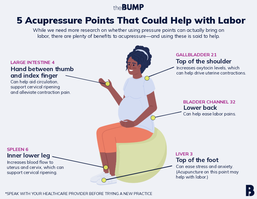 Ahead are potential acupressure points to bring on labor, according to experts.