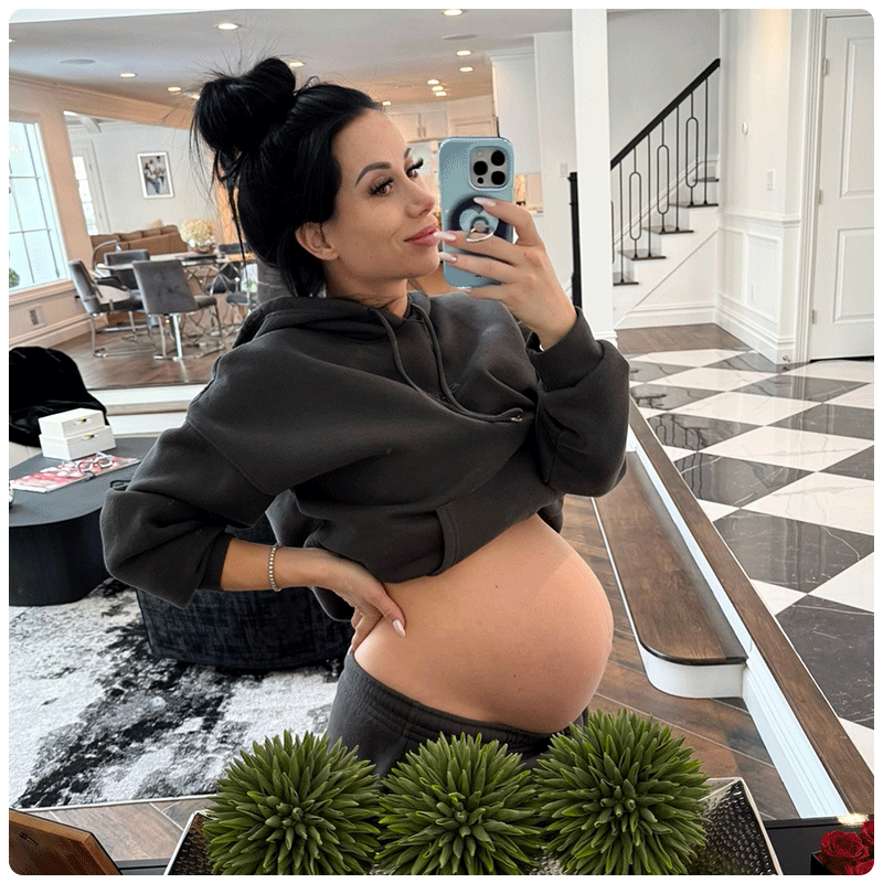 RF: My oldest is a senior in high school, so we’re in full-blown college mode. It’s a very full-circle moment. I met Jaiden when he had just turned 8. It’s a very unique situation for me to be in—to be having my first baby boy, while also shipping my first technically baby boy away to college. With this pregnancy, there’s less worry than there was with Juliana only because Gigi was the only baby—it was just her. Now it’s her and Juliana, who’s a little bit more into the baby thing. I just feel like it’s going to be a little bit more of an easy transition because I’ve done it before.