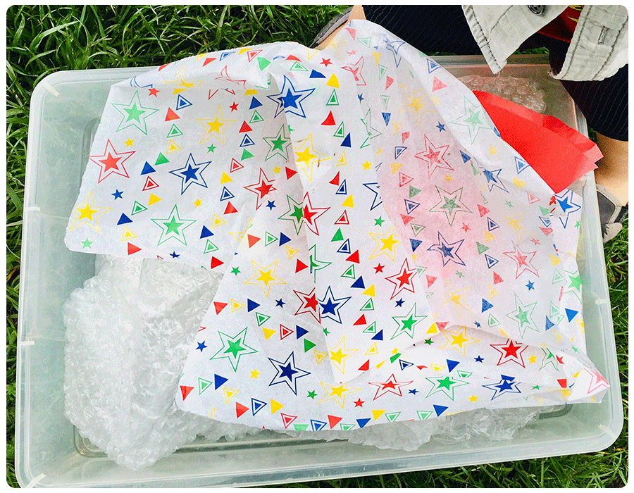 Tissue paper sensory bin
