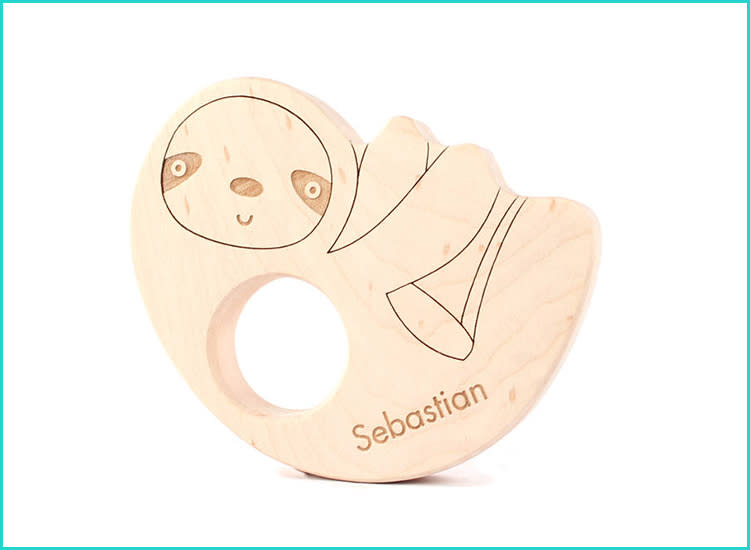 Looking for something personalized? This wooden sloth toy comes engraved with baby’s name. And fear not—the handmade gift is made from sturdy, non-splintering wood.