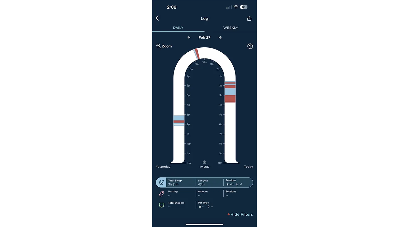 The Cradlewise and SNOO both feature an on/off button on the bassinet itself, but are primarily operated via an app. With a verified purchase of the SNOO, you’ll gain access to a 9-month premium subscription to the Happiest Baby app for free. Parents that don’t have access to the free subscription can pay for the app on a monthly basis. “When you download the app it makes you create an account and enter your baby’s information such as age and sex,” says Shauna. “I used the app on my Apple iPhone, and it seemed a little complicated at first but once I got the hang of it it seemed pretty straight forward,” continues Shauna. “It shows a bunch of insights such as the total hours slept and the longest hours slept,” explains Shauna, who loved having that information handy. “Right now he is waking up every few hours to eat, but it’s reassuring to know he is still sleeping during these hours and I can tell from the app,” she continues. Overall, Shauna said the app was “amazing.”.