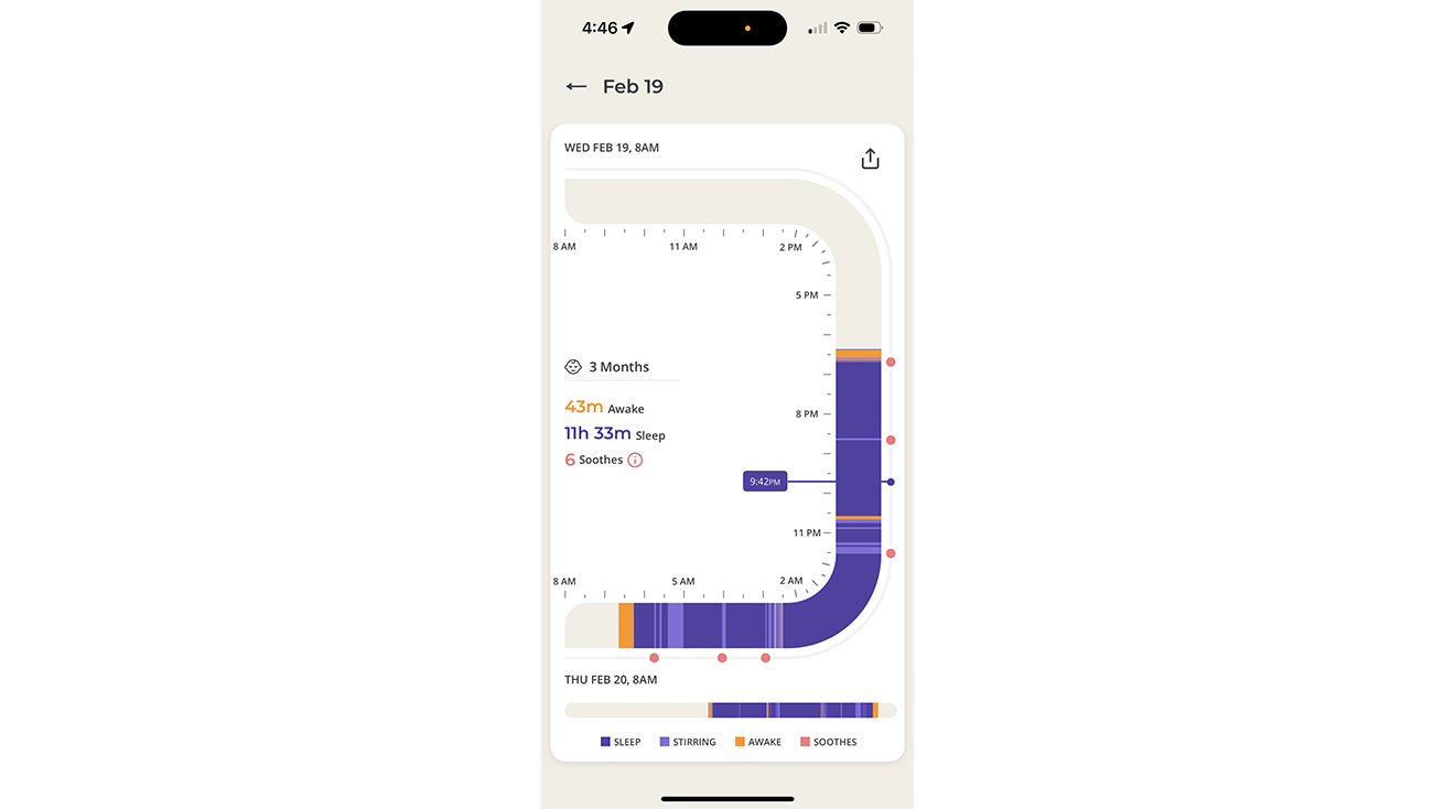 “You can adjust the sound and motion in the app or prevent it from doing one of the actions,” Sammy continues. While you can adjust the soothing pattern manually via the app, Sammy noted that the “smart selection” feature also automatically adjusts the sensitivity based on baby’s sleep patterns. She said the cry detection technology seems “pretty sensitive” and responded to her baby quickly. “If my son adjusted positions or whined a little, it would respond,” confirmed Sammy. “My son never got to full blown crying at night, so the soothing worked well,” says Sammy, although she notes that her son is a good sleeper so she didn’t notice a major difference in his sleep-wake cycle.