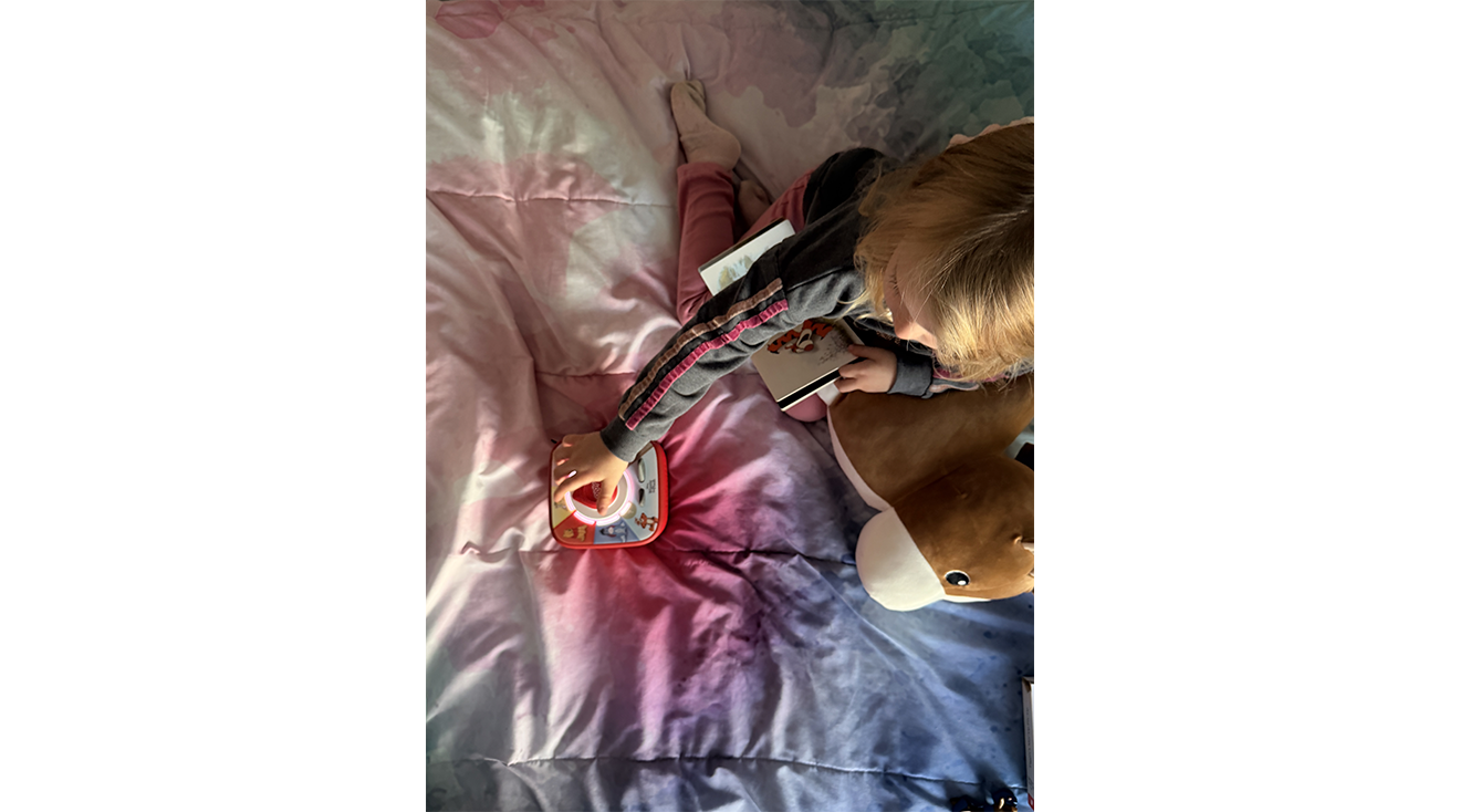 As my daughter played, the parent app walked me through all the controls: pinch the ears for volume, whack the side to change stories and tilt to fast-forward or rewind. My 3-year-old caught on quickly and now operates it completely independently. I’ll be honest though, the firm “whack” you need to change stories on the tonies is tricky. It requires some force—sometimes my daughter needs a few tries, and occasionally the tonies go flying. For kids 4 and older, this probably won’t be an issue, but it’s something to keep in mind for younger players. This was the case on the original Toniebox, and it carries over to the Toniebox 2.