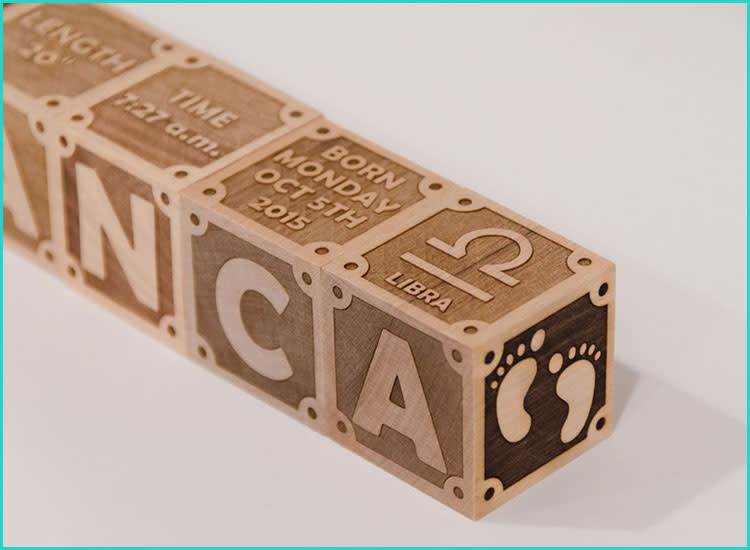 We’re big fans of stylish wooden blocks—especially personalized ones! Build your child a set that spells out their moniker, but don’t stop there. These baby name blocks can be engraved with other details, like their place of birth, newborn weight or even their zodiac sign.