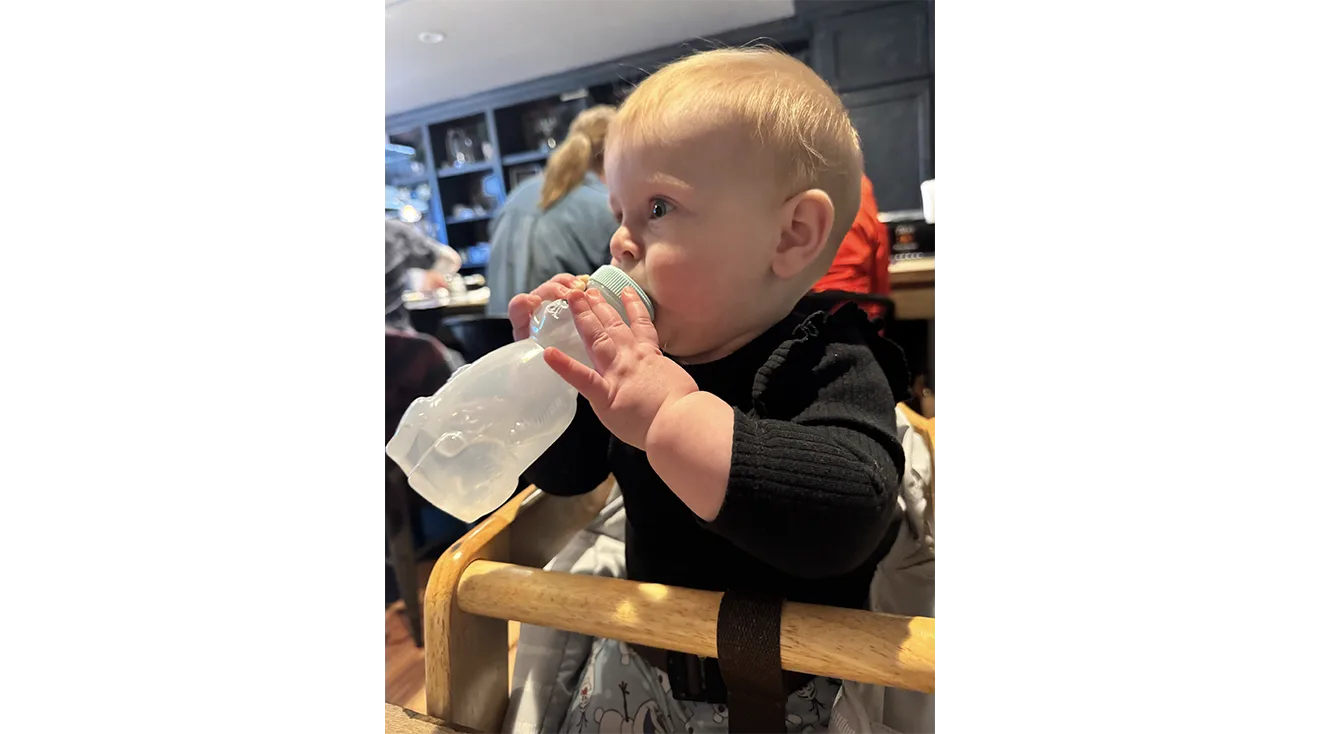 For beginners, mom-of-one Jaclyn recommends squeezing it and then handing it off to your kiddo. “When we give it to ‘[our daughter], we squeeze it to get the flow started, and she takes over from there and will continue to know to suck on the straw when she goes back to it. Basically, she just needs that one kickstart to know what to do with it,” Jaclyn explains.