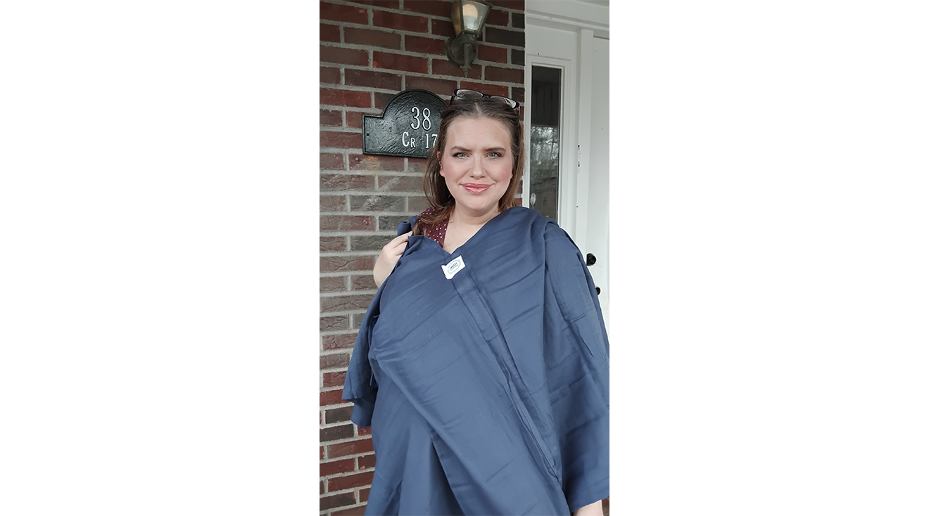For a secure fit when nursing, this cover-up has an adjustable strap on the neck and one with several buttons on the back. Ashleigh told us that it was easy to use both of these straps to achieve her desired fit. “You only have to adjust the neckline once and can use it at that length every time. It's just as easy to use as an apron,” she explains. Ashleigh also appreciated how well it fit her body without being restrictive in any way. “I’m very busty, and since the neckline is an arch shape, the cover still fits without being too snug. I’m also taller than average, and the nursing cover was still long,” the new mom shared. “It's great because the one size fits all does actually fit all.”