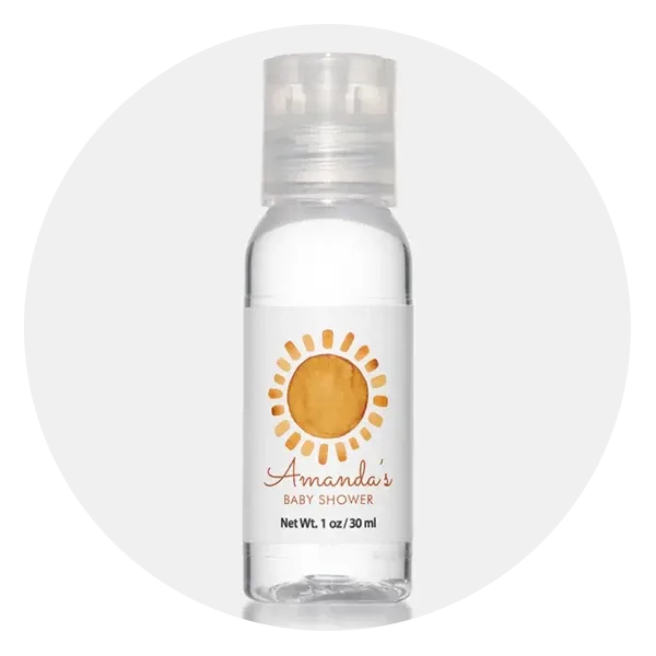 Buy it: Happy sunshine baby shower hand sanitizer, 12 for $48, Zazzle.com