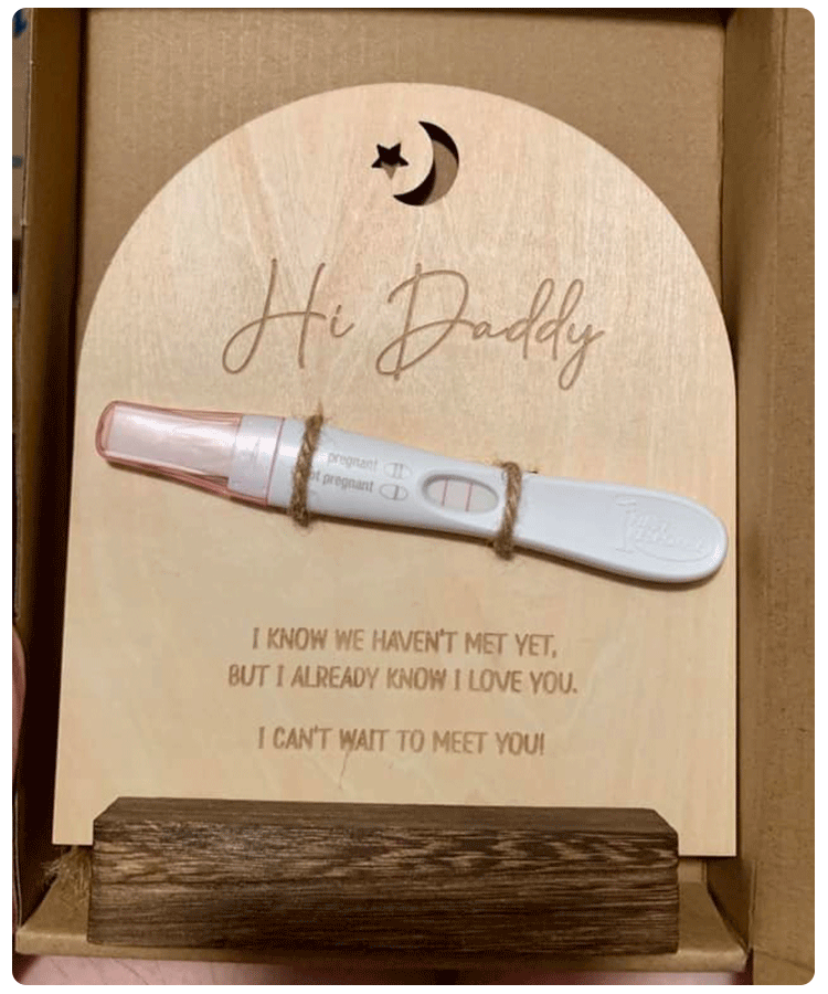 Incorporate your pregnancy test into a thoughtful keepsake with a handcrafted gift from Etsy. Choose from hundreds of options featuring sweet messages and a special place to showcase your positive test.