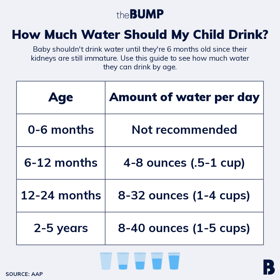 Here’s a general breakdown of how much water your little one should drink during the first few years of life.