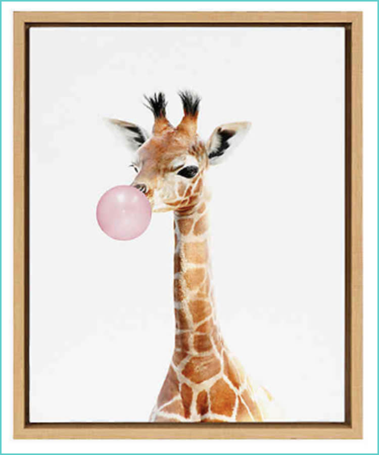 Buy it: Bubble Gum Giraffe Framed Wall Art, $35, Bedbathandbeyond.com