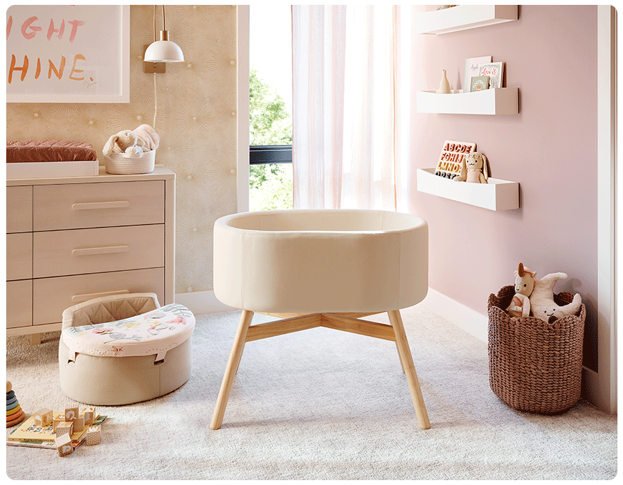 BM: You spend a lot of long nights in the nursery with your newborn, so having a comfortable place to sit is a necessity. I love the Nessa Sherpa Glider from Crate & Kids. The high back and armrests keep you comfortable, and it looks great in the room…They even helped us select a glider that has an adjustable ottoman to ensure we can both sit comfortably in the glider at night.