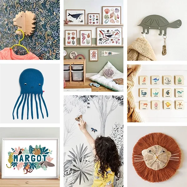 From marine creature mobiles to jungle-themed wallpaper with butterflies and beetles, not only do these items function as attractive additions, but they can also help teach children about the importance of global conservation.