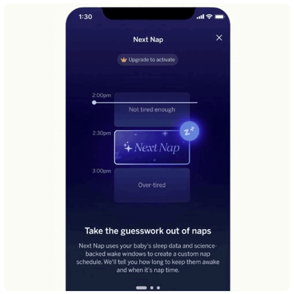 NextNap is included in the Nanit app for Milestones and Memories Plan subscribers. To get started, make sure your app is updated, head to the Activity tab and tap the NextNap banner to enter your baby’s details (bedtime, wake time and number of naps). From there, you can set notifications and begin receiving personalized nap predictions. Learn more at Nanit.com
