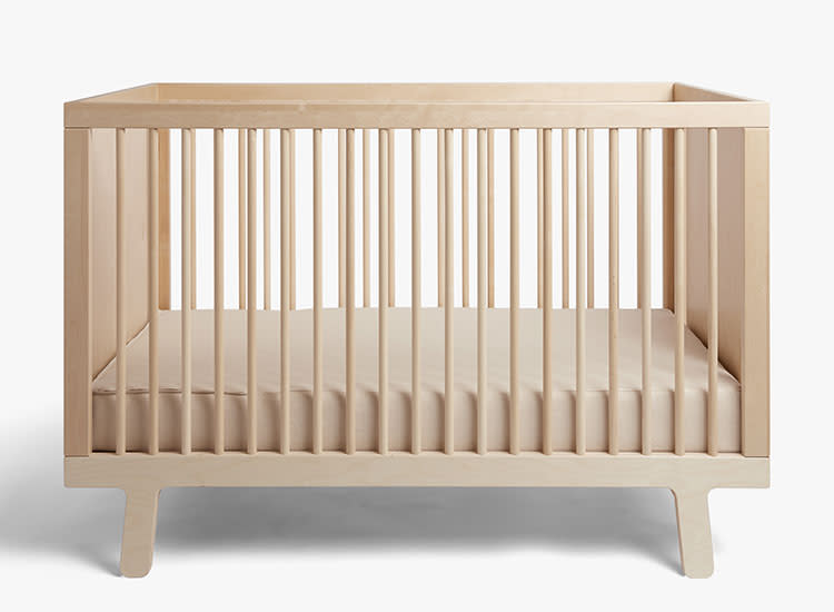 Some of the highlights from the collection include a muslin swaddle blanket, bandana bib set, travel changing pad, linen crib sheets, the Oeuf Sparrow crib and toddler bed conversion kit.