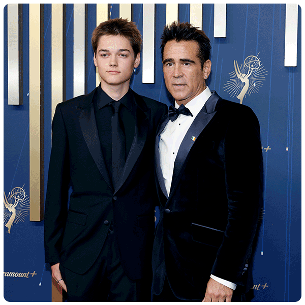 Not all parents left their kiddos at home for the evening. Colin Farrell, nominated for Outstanding Lead Actor in a Limited or Anthology Series or Movie for his role in The Penguin, made the Emmys a family affair by bringing his 15-year-old son Henry along for the ride. The duo matched in classic black suits, Farrell’s other son, 22-year-old James, cheered the two on from afar.