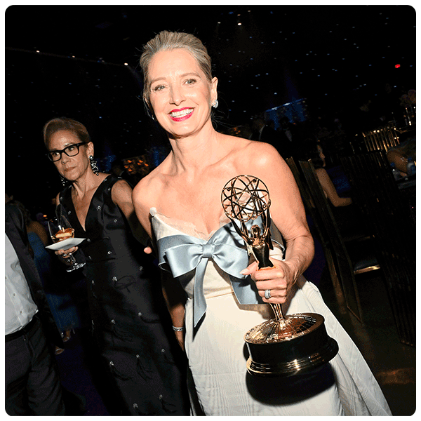 Keeping The Pitt’s winning streak alive, Katherine LaNasa earned her first Emmy for Outstanding Supporting Actress in a Drama Series. Shining in a white gown accented with a blue bow in tribute to nurses, LaNasa thanked her cast and crew before turning to her family, crediting her two children for “making me real” and her husband for “helping me always with everything.”